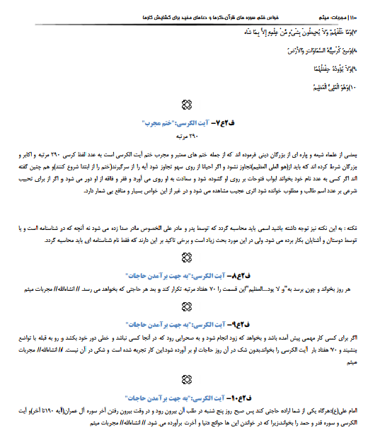 کتاب مجربات میثم در باب خواص سوره های قرآن، ذکرها و دعاهای مفید برای گشایش کارها و اجابت دعاها